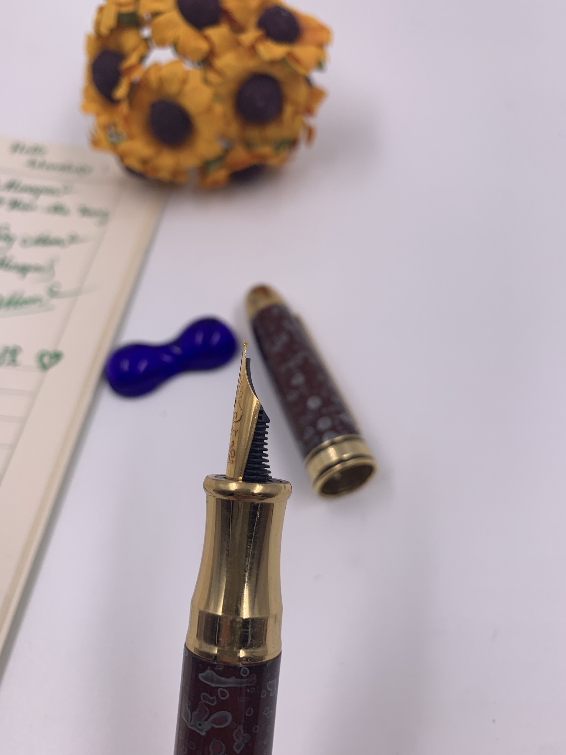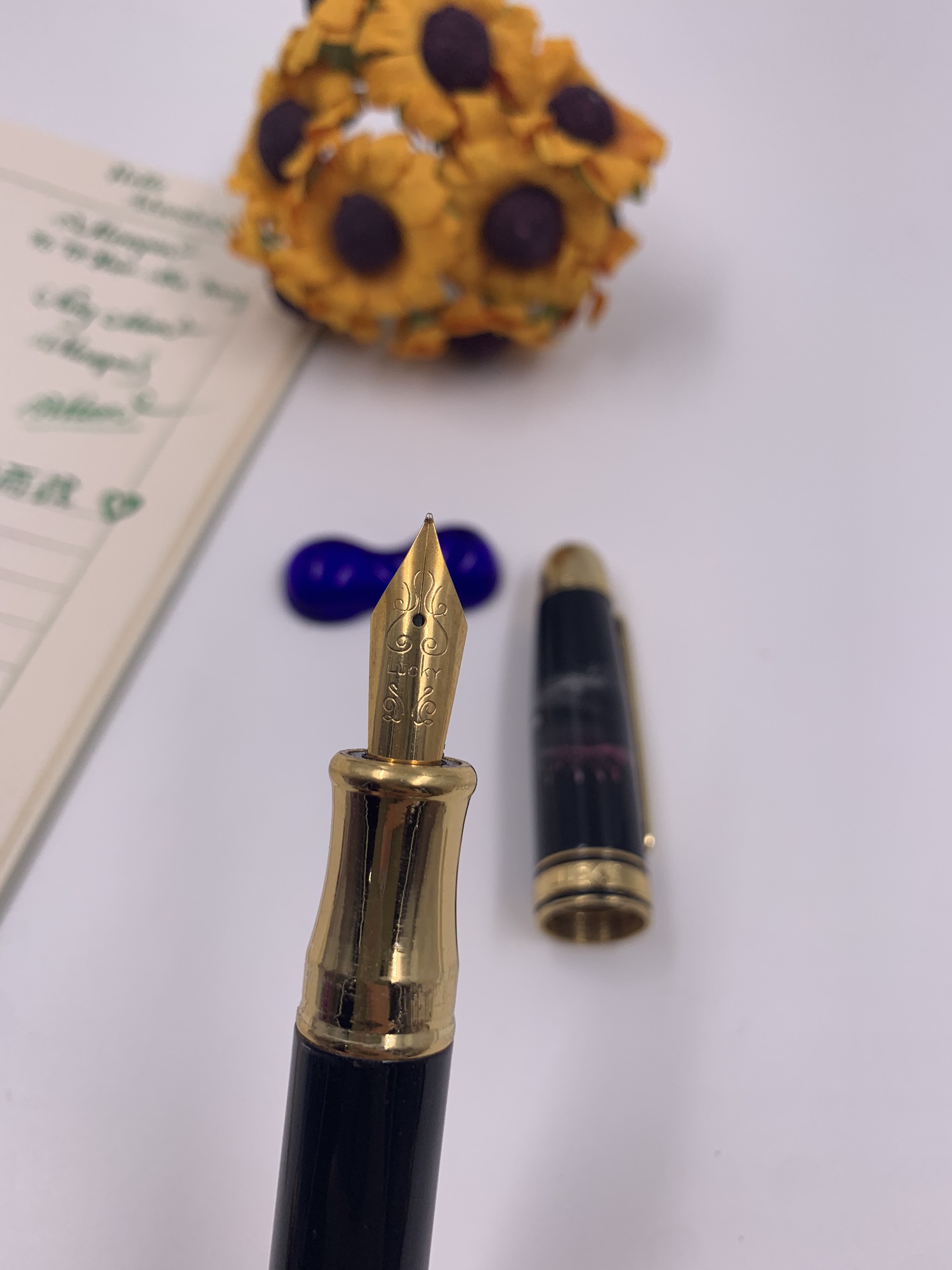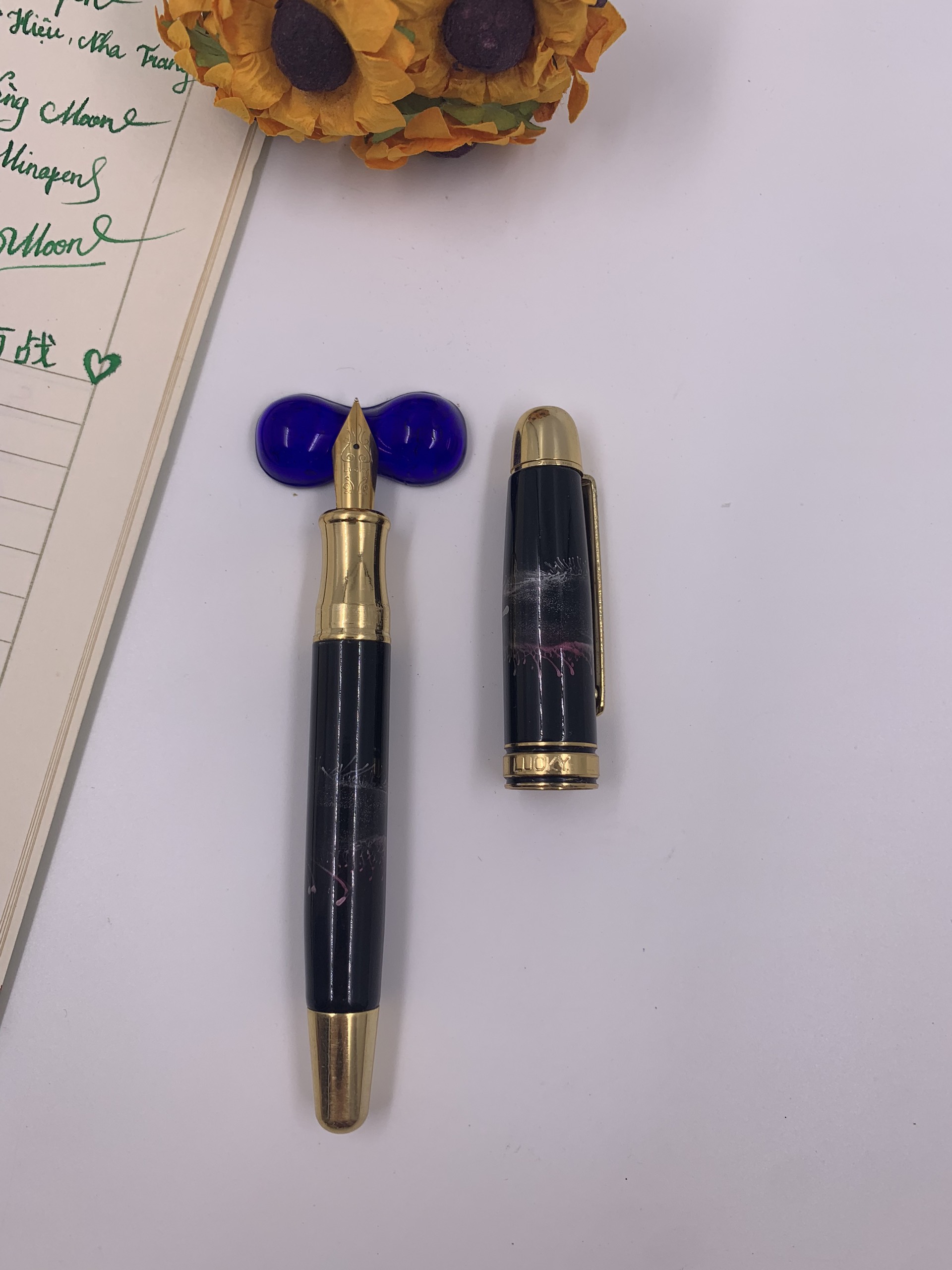 Ngòi bút mạ vàng size 0.5mm. Converter zin đi kèm.