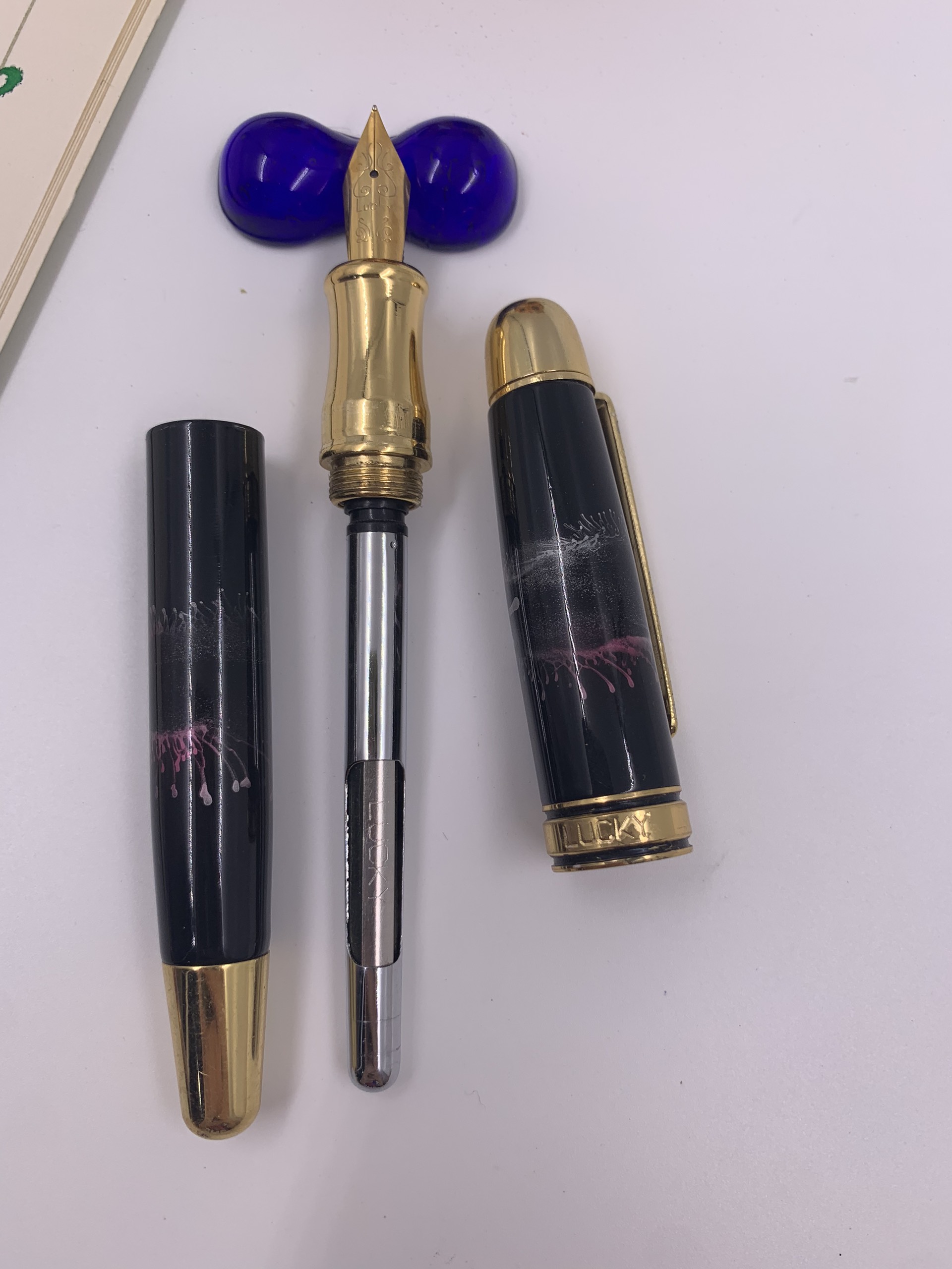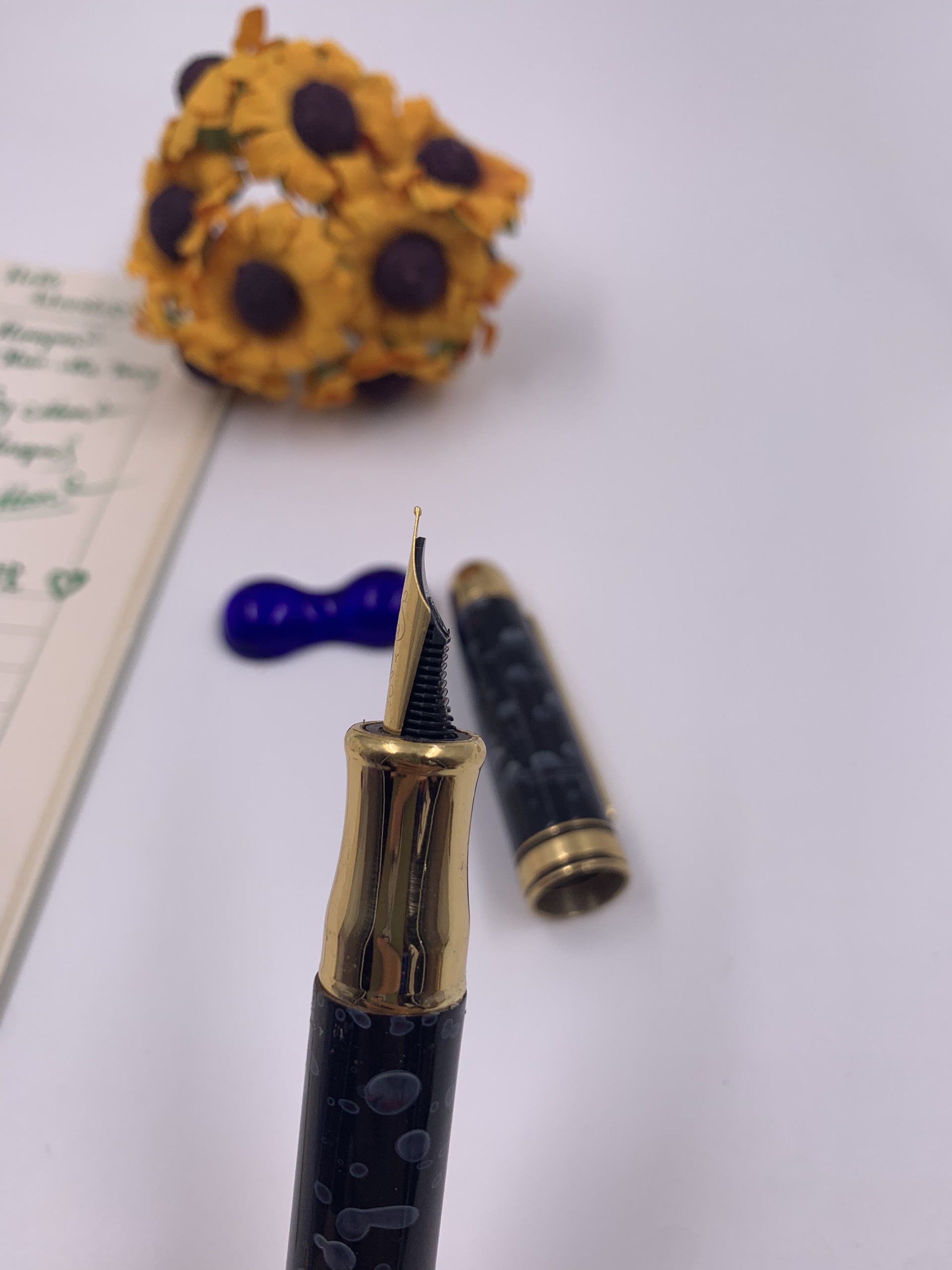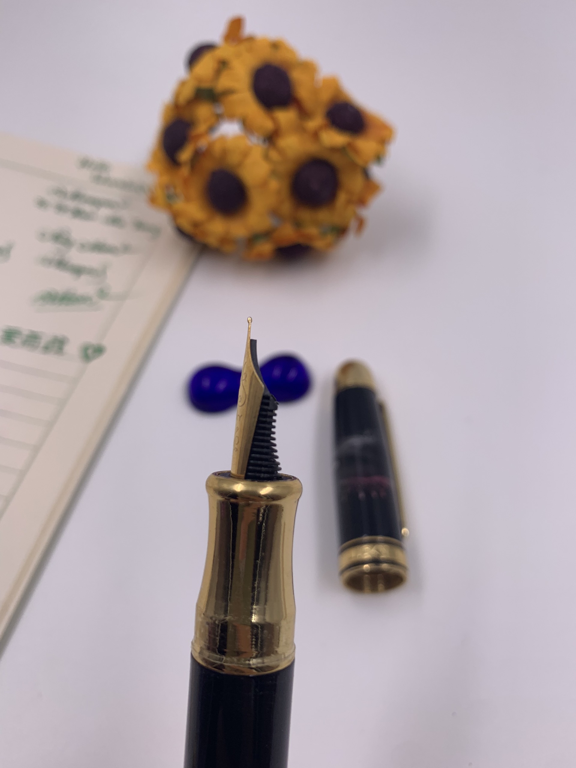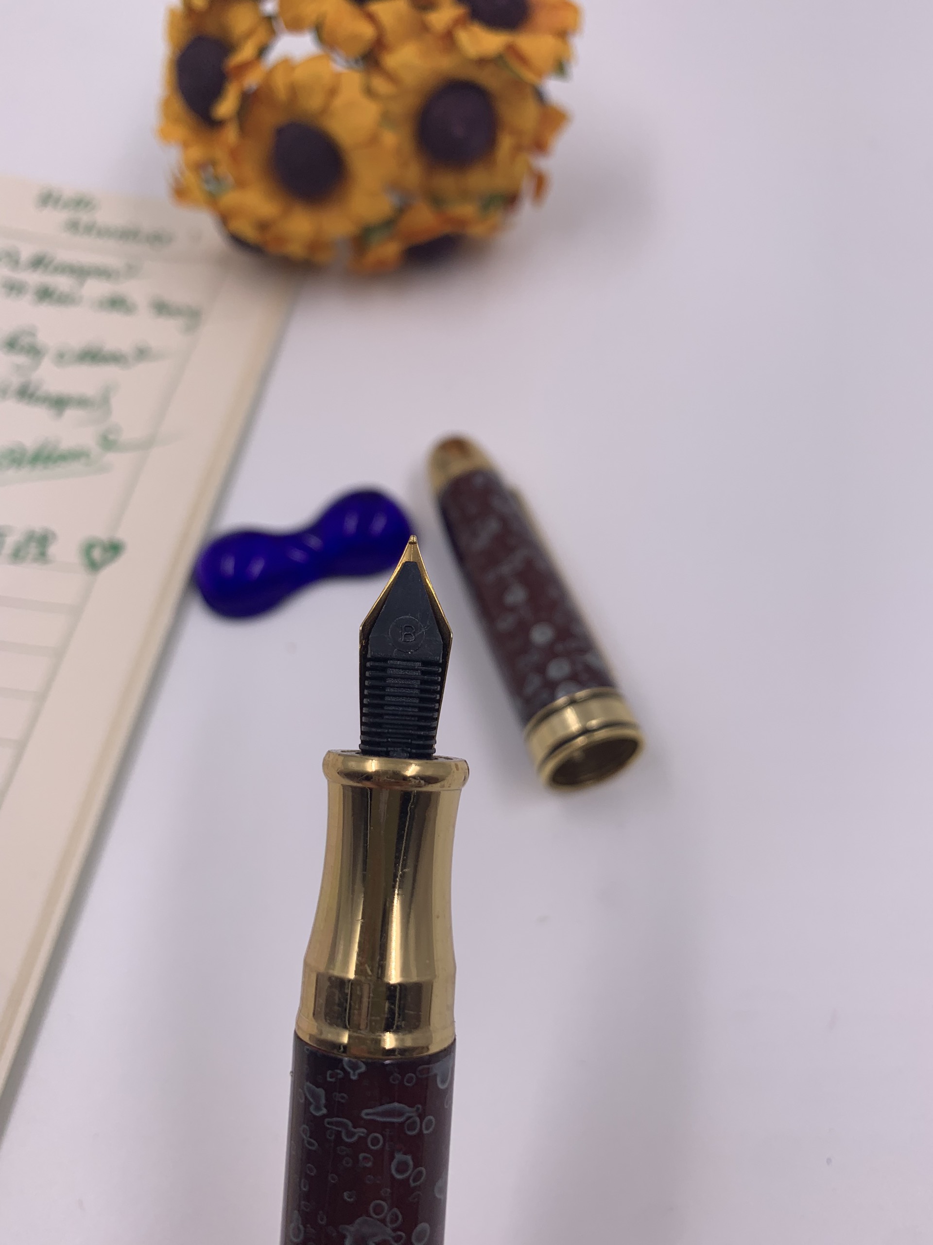 Ngòi bút mạ vàng size 0.5mm. Converter zin đi kèm.